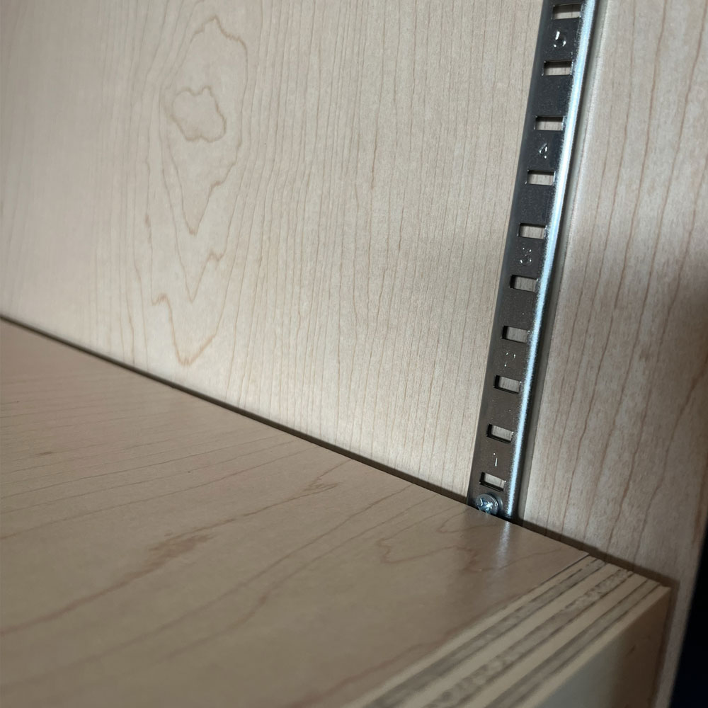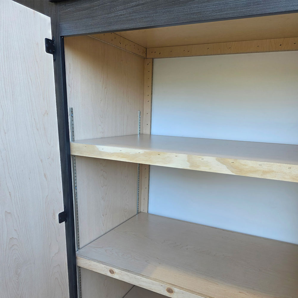 First we attach each panel to your wall, build out the cabinet boxes and add face frames. Next we place the shelving and reinforce them with extra support to hold up 100 to 150 pounds. Lastly we hang the doors, install any hardware and wipe down the cabinets before the installation is complete. Installation usually takes 1-2 days from start to finish, depending on complexity.