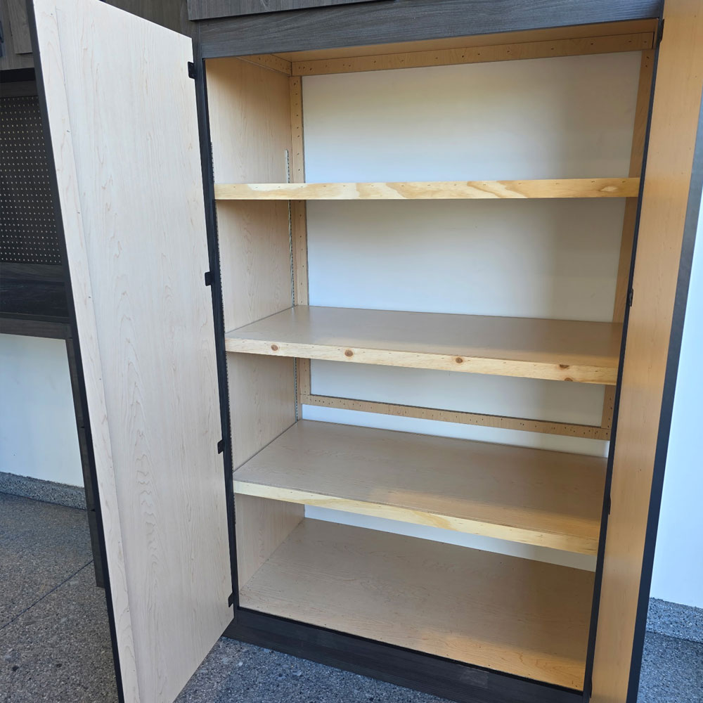 We offer a full line of custom garage cabinets! Our team offers an endless variety of sizes and designs to make your garage a one of a kind work of art. Our cabinets are high quality, strong, durable and easy to clean and care for. Each cabinet project is custom fabricated in our 5,000 square foot facility located in Mesa, Arizona.