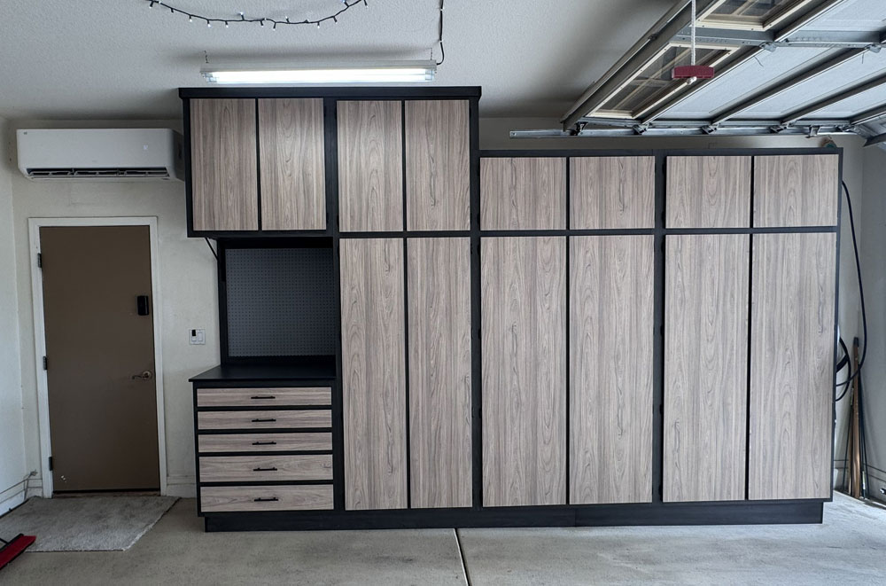 Garage Cabinets with Workbench Color Ginger on Storm Features Workbench Floor-to-Ceiling Installation